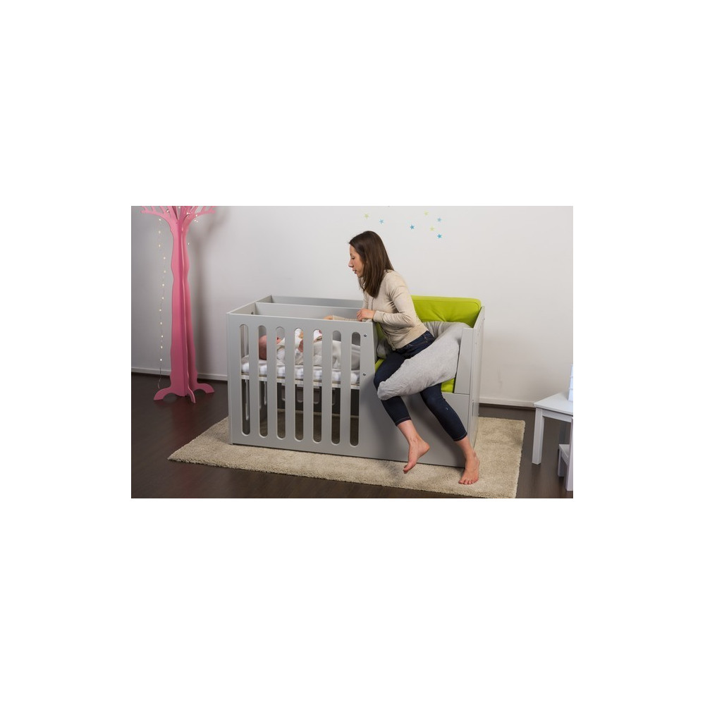Transformation : around 3 years, when baby grows up and wants to go to bed or leave it, replace the Berce O'Lit side by the new evolution kit with an integrated barrier