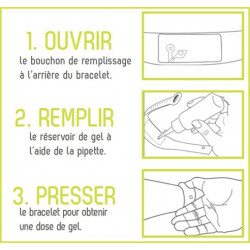 | Function | Bracelet distributeur de gel désinfectant, rechargéable. |