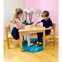 En version classique ou en version Ovaline, l’ensemble Ma Première Chaise et Ma Première Table constituent le premier mobilier parfait sur mesure pour accompagner bébé sur le chemin de l'autonomie et pour faire comme papa et maman en reproduisant des gestes de grands assis à table. Ces tables sont idéales pour que bébé puissent manger ou jouer avec ses peluches. La ligne est simple, sobre et s’adapte à toutes les chambres d’enfant, à tous les types de décoration. La hauteur de la table est de 37 cm. La largeur est de 60 cm et enfin la profondeur est de 40 cm. La table est livrée à plat, il ne reste que les pieds à visser, les vis et la clé Allen étant fournies.