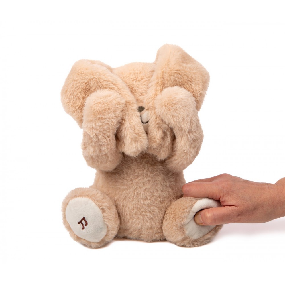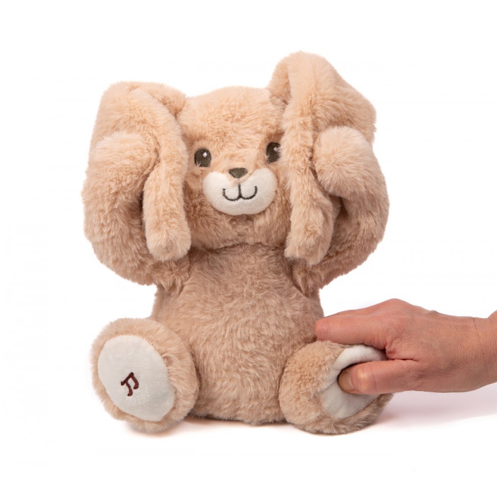 Avec Justin, le jeu et la tendresse sont au rendez-vous. Appuyez sur sa patte droite et ses bras s’animent pour jouer à cache-cache. Pour un moment plus calme, appuyez sur sa patte gauche et Justin joue une douce comptine, parfaite pour apaiser bébé avant la sieste ou au moment du coucher.