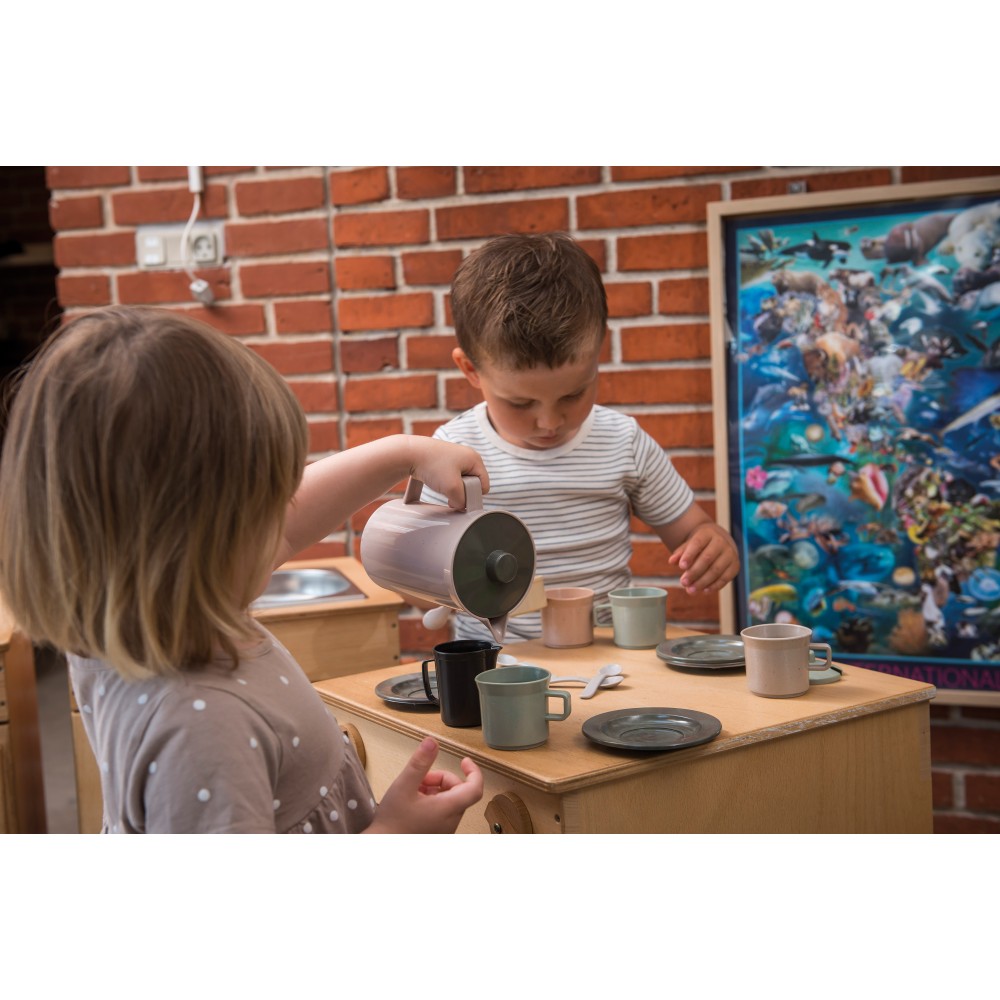 Faites travailler l’imagination de votre enfant avec ce set de café écologique de 17 pièces en plastique recyclé.