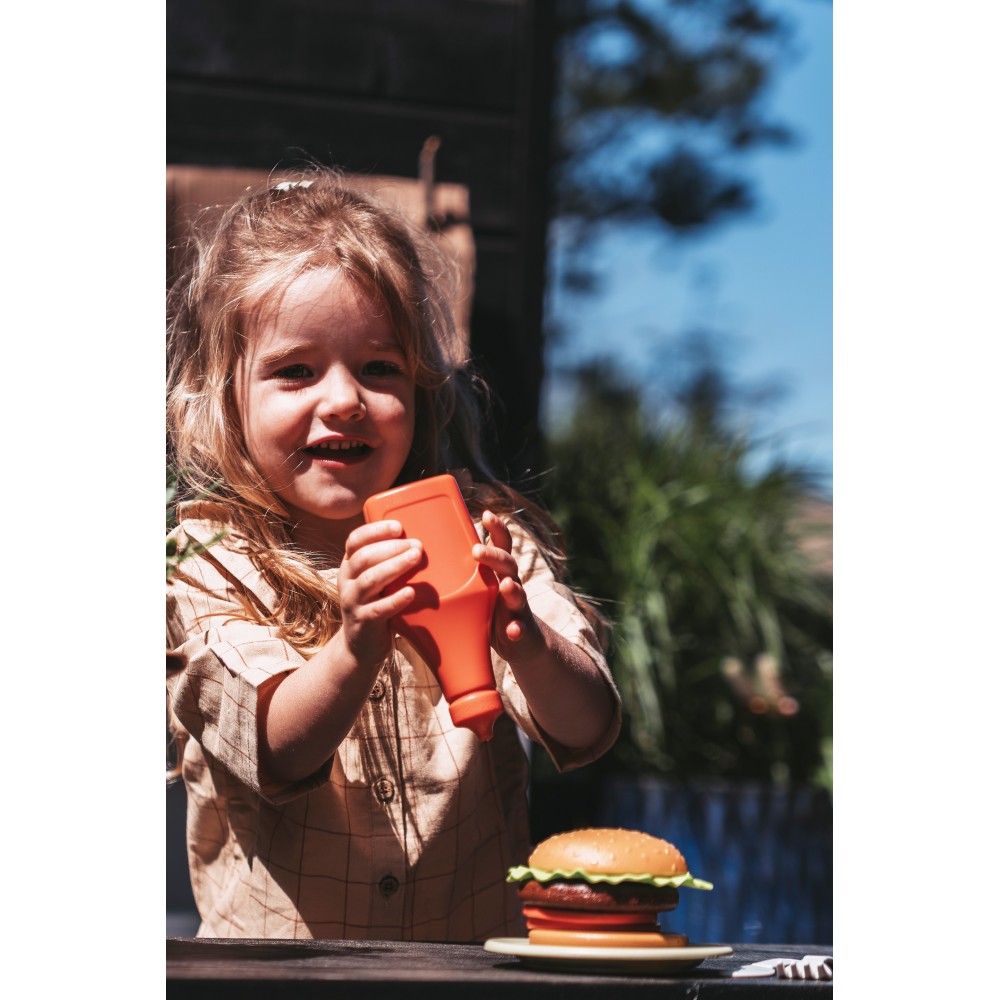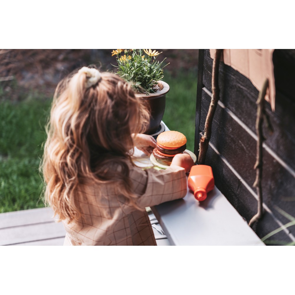 Un set de 19 pièces en bioplastique pour préparer de délicieux hamburgers imaginaires, idéal pour des jeux de rôle créatifs et responsables dès 2 ans.