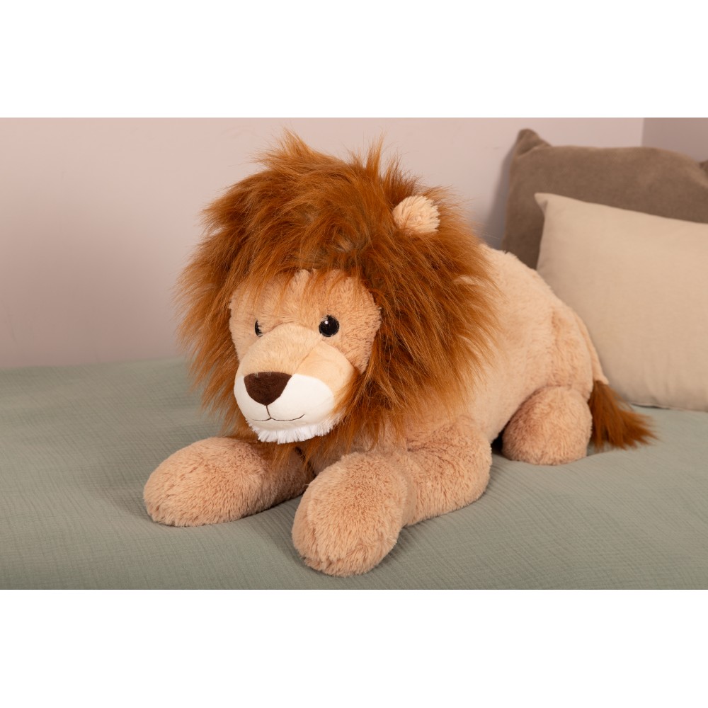 Faites entrer la majesté dans la chambre avec Léon le lion allongé, une peluche géante de 100 cm conçue pour les câlins XXL. Son pelage doux et soyeux et son corps allongé offrent confort et sécurité aux enfants, tout en stimulant leur imagination.