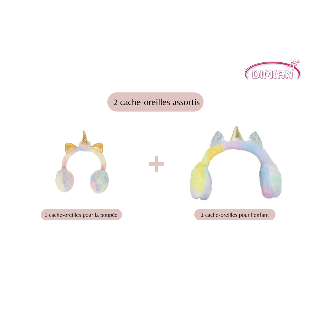 Une élégante poupée de 30 cm vendue avec un cache-oreilles pour la poupée et un cache-oreilles pour l'enfant !