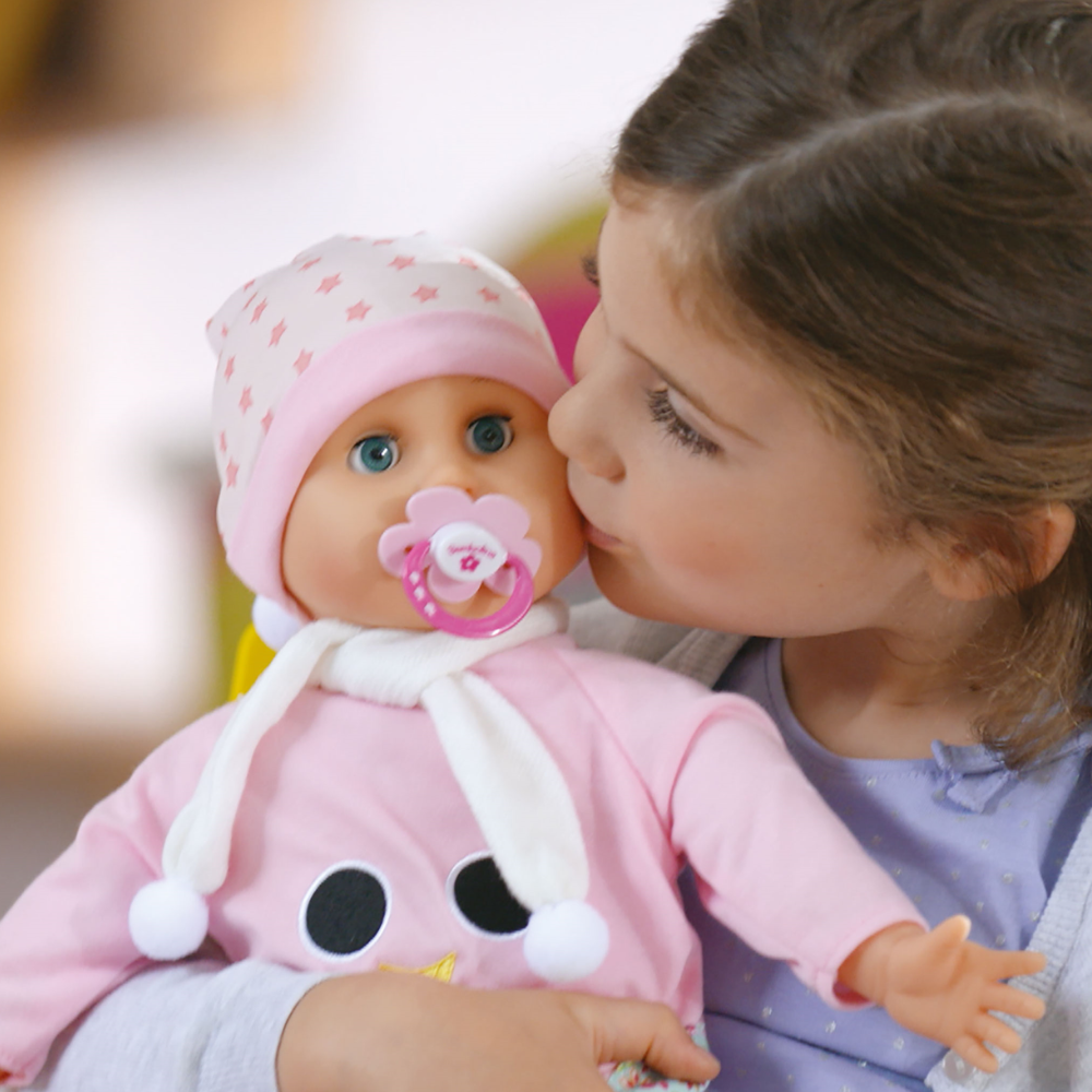 Votre enfant n'aura qu'à appuyer sur le ventre de sa poupée pour entendre une berceuse. De quoi développer son langage et son vocabulaire.