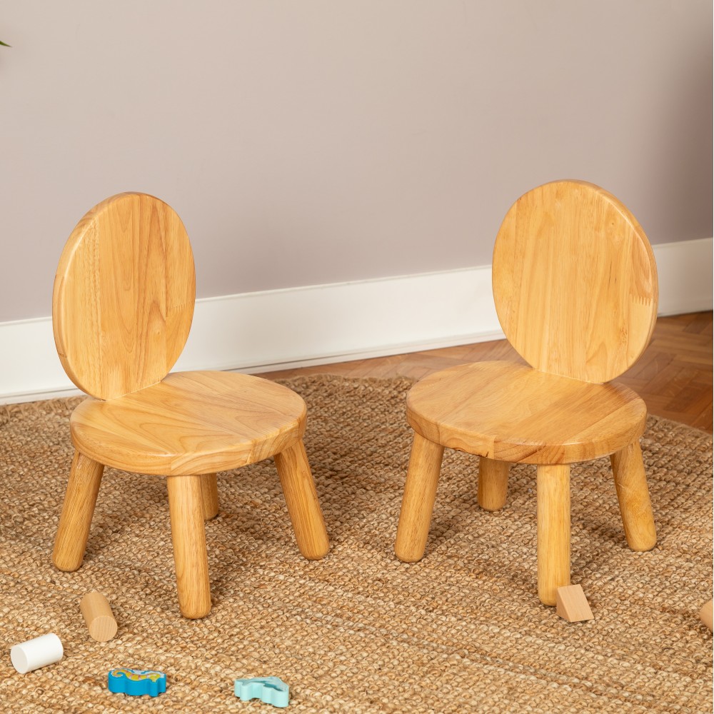 En bois massif naturel, ces jolies chaises ont une assise basse et conviennent parfaitement aux bébés dès 12 mois et jusqu'à 4 ans.